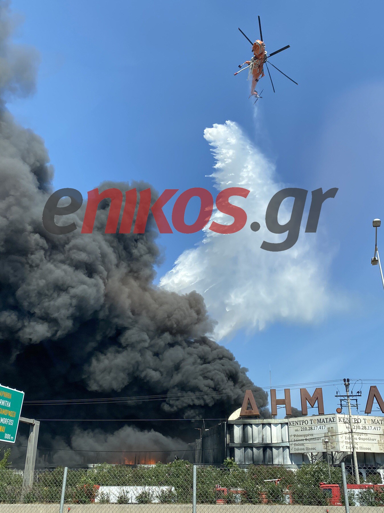 Συνεχείς ρίψεις πραγματοποιούν τα δύο ελικόπτερα που επιχειρούν στη μεγάλη φωτιά που ξέσπασε σε εργοστάσιο στη Μεταμόρφωση. Αυτή την ώρα στο σημείο για την κατάσβεση της πυρκαγιάς επιχειρούν 49 πυροσβέστες με 14 οχήματα, εθελοντές και υδροφόρες Ο.Τ.Α. Από αέρος συνδράμουν δύο ελικόπτερα. Σύμφωνα με το ΑΠΕ – ΜΠΕ εξαιτίας των πυκνών καπνών και της χαμηλής ορατότητας κλειστή παραμένει η Εθνική Οδός Αθηνών- Λαμίας και το σημείο διακοπής, όπως έγινε γνωστό από την Τροχαία, μετακινήθηκε στα διόδια της Αττικής Οδού. Όπως θα δείτε στο βίντεο που έστειλε αναγνώστης του enikos.gr τα ελικόπτερα κάνουν ρίψεις νερού για να περιοριστεί η έκταση της φωτιάς.