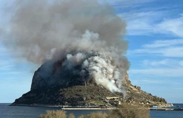 Φωτιά ξέσπασε το μεσημέρι της Τετάρτης (11/12), στη Μονεμβασιά, σε έκταση με χόρτα, μέσα στο Κάστρο.