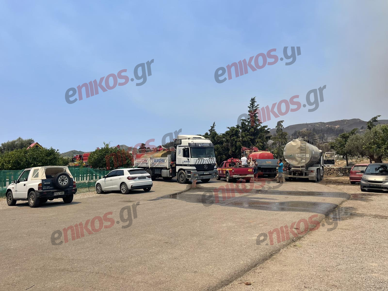Όπως είπε ο εκπρόσωπος τη Πυροσβεστικής Γιάννης Αρτοποιός στον ΣΚΑΪ, η ημέρα θα είναι δύσκολη στο νησί καθώς από το απόγευμα αναμένεται να ενισχυθούν οι άνεμοι.