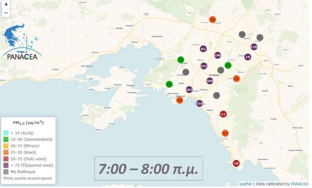 Υποσημείωση: Οι μετρήσεις αιωρουμένων σωματιδίων ΡΜ 2.5 πραγματοποιούνται με χρήση αισθητήρων οπτικής καταμέτρησης. Οι συγκεντρώσεις διορθώνονται με βάση πρότυπα όργανα αναφοράς.