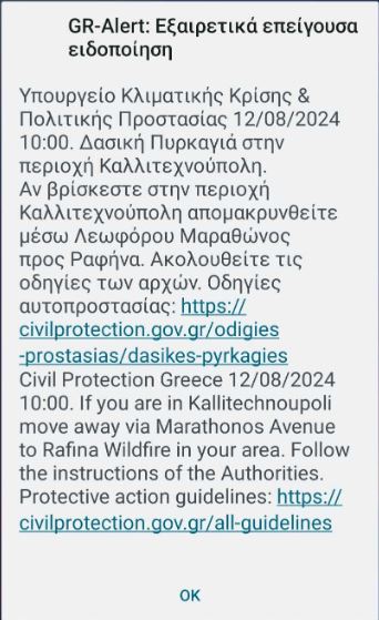 Συγκεκριμένα, στο μήνυμα αναφέρεται ότι, «αν βρίσκεστε στην περιοχή Καλλιτεχνούπολη απομακρυνθείτε μέσω Λεωφόρου Μαραθώνος προς Ραφήνα».