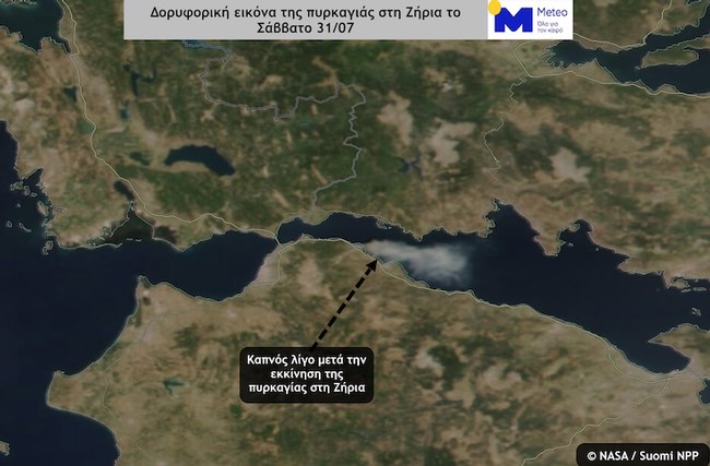 Επιπλέον, όπως αναφέρει η ΕΡΤ, δορυφορικές εκτιμήσεις των δορυφόρων SUOMI NPP και NOAA-20 αποκαλύπτουν τη μεγάλη έκταση της πυρκαγιάς τρεις ώρες περίπου μετά την εκκίνησή της καθώς τόσο η διαθέσιμη καύσιμη ύλη όσο και οι μετεωρολογικές συνθήκες ευνοούσαν την ταχεία εξάπλωση αυτής.