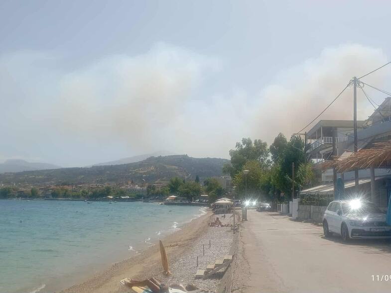 «Αγροτοδασική πυρκαγιά στην περιοχή σας Αν βρίσκεστε στην περιοχή Μερτίδι Αχαΐας απομακρυνθείτε προς Αίγιο. Ακολουθείτε τις οδηγίες των Αρχών», επισημαίνεται στο πρώτο μήνυμα του 112.