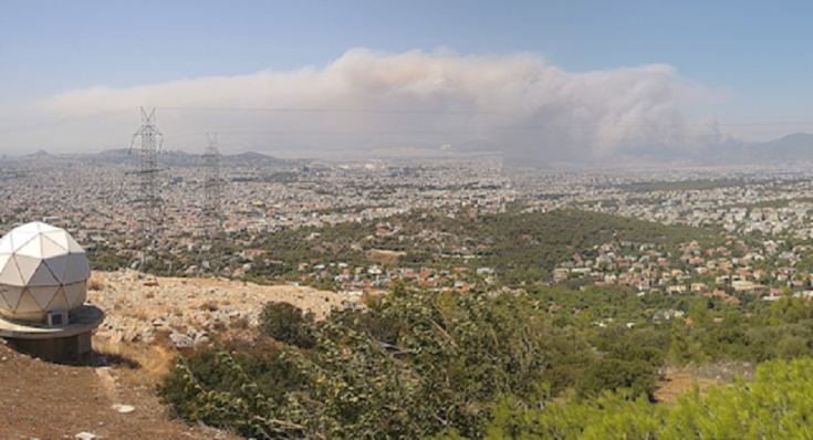 Εικόνα 1. Άποψη της δασικής πυρκαγιάς στη Χασιά (Αττική) από τις κάμερες της μονάδας ΜΕΤΕΟ/ΕΑΑ στην Πεντέλη.