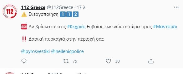 Εφιαλτική είναι η κατάσταση στη βόρεια Εύβοια, όπου μαίνεται η μεγάλη πυρκαγιά, απειλώντας και τις Κεχριές, που εκκενώθηκαν. Όσοι βρίσκονται στον οικισμό έλαβαν μήνυμα μέσω του “112” να εγκαταλείψουν την περιοχή και να κατευθυνθούν προς το Μαντούδι.