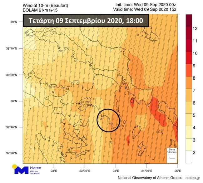 Οι βόρειοι άνεμοι που έπνεαν νωρίς το απόγευμα στην περιοχή αναμενόταν να διατηρηθούν κατά τις επόμενες ώρες στα 5 έως 7 μποφόρ με κατά τόπους ισχυρότερες ριπές. Στους σχετικούς χάρτες παρουσιάζεται το πεδίο των ανέμων στην Αττική σύμφωνα με τα τελευταίες εκτιμήσεις του μοντέλου υψηλής ανάλυσης BOLAM του Εθνικού Αστεροσκοπείου Αθηνών / meteo.gr για τις 18:00 (πάνω) και 21:00 (κάτω).