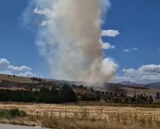 Σύμφωνα με την Πυροσβεστική, η φωτιά καίει υπολείμματα καλλιεργειών σε οικόπεδο, χωρίς να απειλείται κάτι.