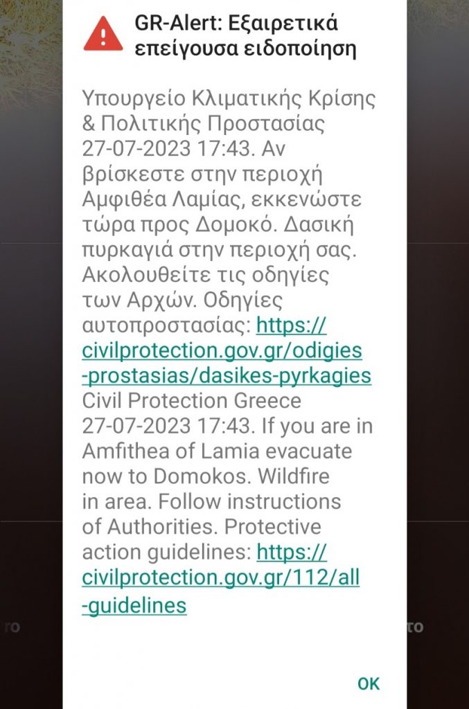 Μήνυμα εκκένωσης από το 112 έφτασε πριν λίγο στα κινητά των κατοίκων της Βόρειας πλευράς της Λαμίας και πιο συγκεκριμένα των κατοίκων της Αμφιθέας να εκκενώσουν τα σπίτια τους προς Δομοκό λόγω της φωτιάς η οποία μαίνεται στο βουνό.