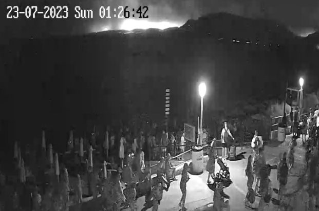 Όπως φαίνεται στο live που μεταδίδει κάμερα από την περιοχή, δεκάδες άνθρωποι βρίσκονται αυτή τη στιγμή στην παραλία και περιμένουν να εκκενώσουν τη Λίνδο.