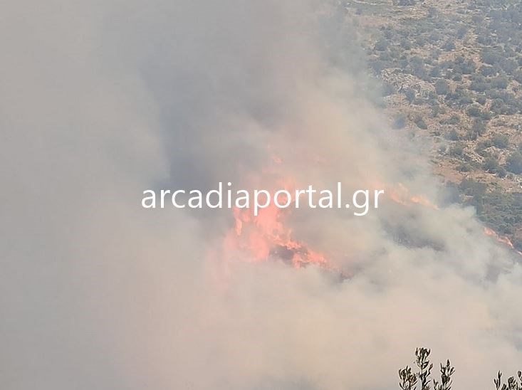 Σε εξέλιξη είναι η φωτιά που ξέσπασε στις Μυκήνες, κοντά στον αρχαιολογικό χώρο.