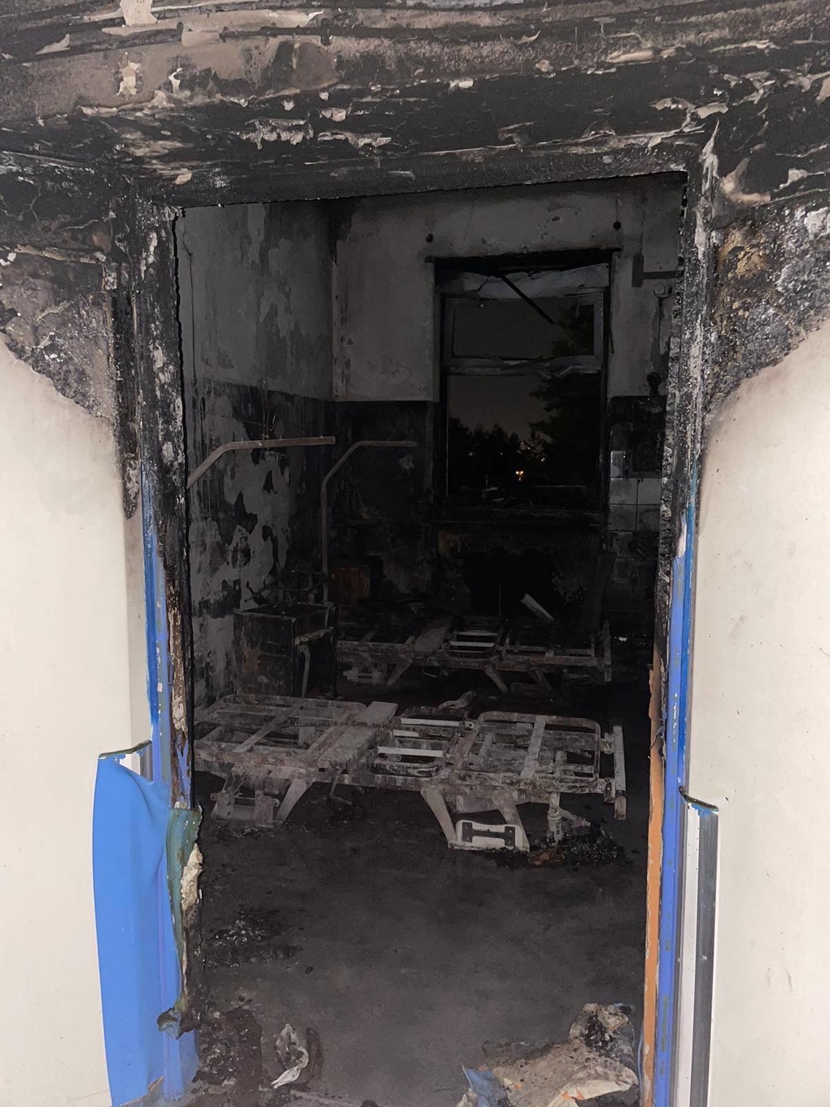 Ωστόσο, έγινε εκκένωση του δεύτερου και του πρώτου ορόφου και οι νοσηλευόμενοι ασθενείς μεταφέρθηκαν στον αύλειο χώρο του νοσοκομείου.