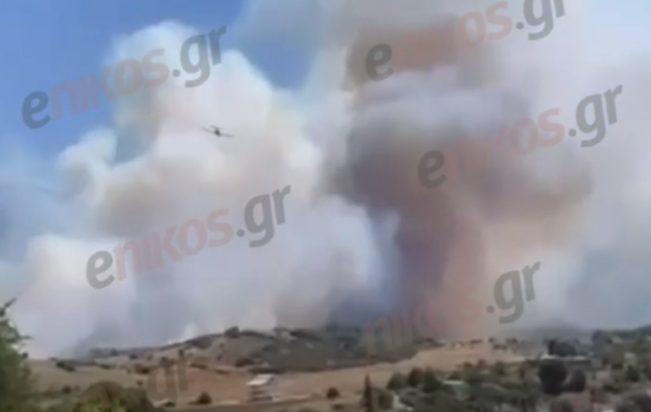 Μέχρι στιγμής δεν κινδυνεύουν σπίτια, ωστόσο, υπάρχει ανησυχία λόγω των ισχυρών ανέμων που πνέουν στην περιοχή.