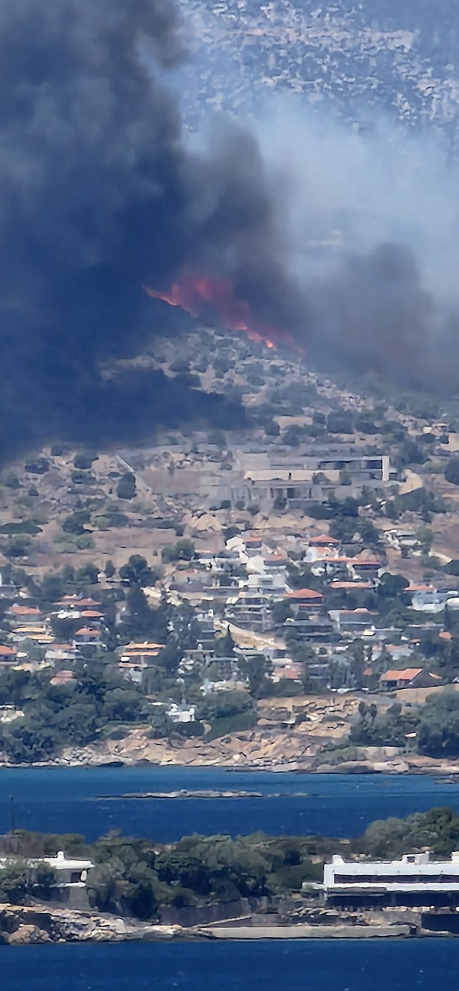 Μέσω του 112 εστάλη μήνυμα στους κατοίκους και τους επισκέπτες να απομακρυνθούν από τις περιοχές Άγιος Δημήτριος, Γαλάζια Ακτή και Αλθέα προς Λαγονήσι.