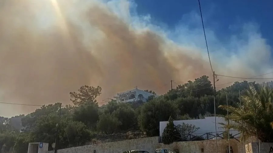 Σύμφωνα με πληροφορίες, το πύρινο μέτωπο ξεπερνά τα έξι χιλιόμετρα, έχει φτάσει στη θάλασσα, όπως αναφέρεται χαρακτηριστικά, ενώ στην περιοχή πνέουν άνεμοι 10 μποφόρ.