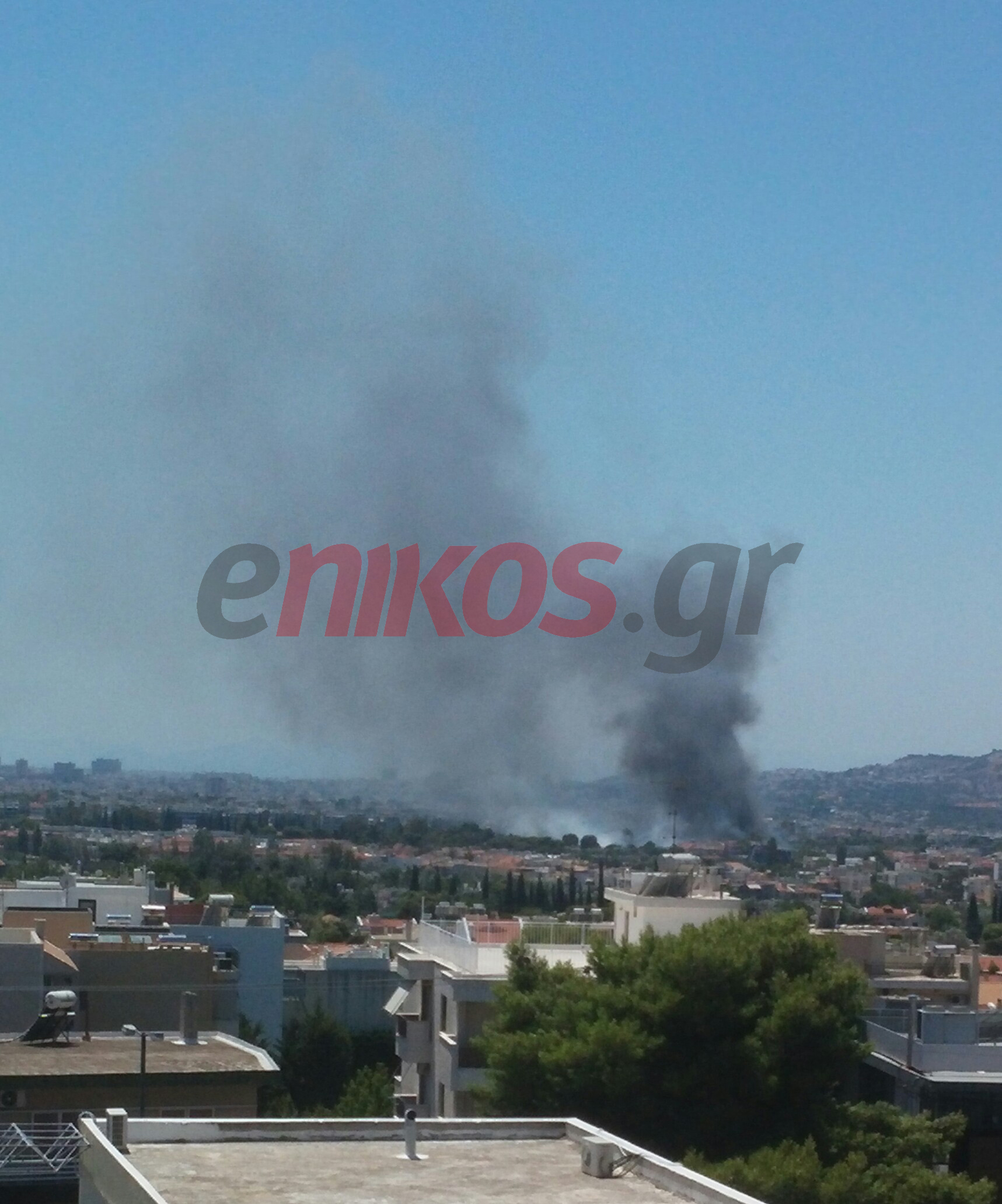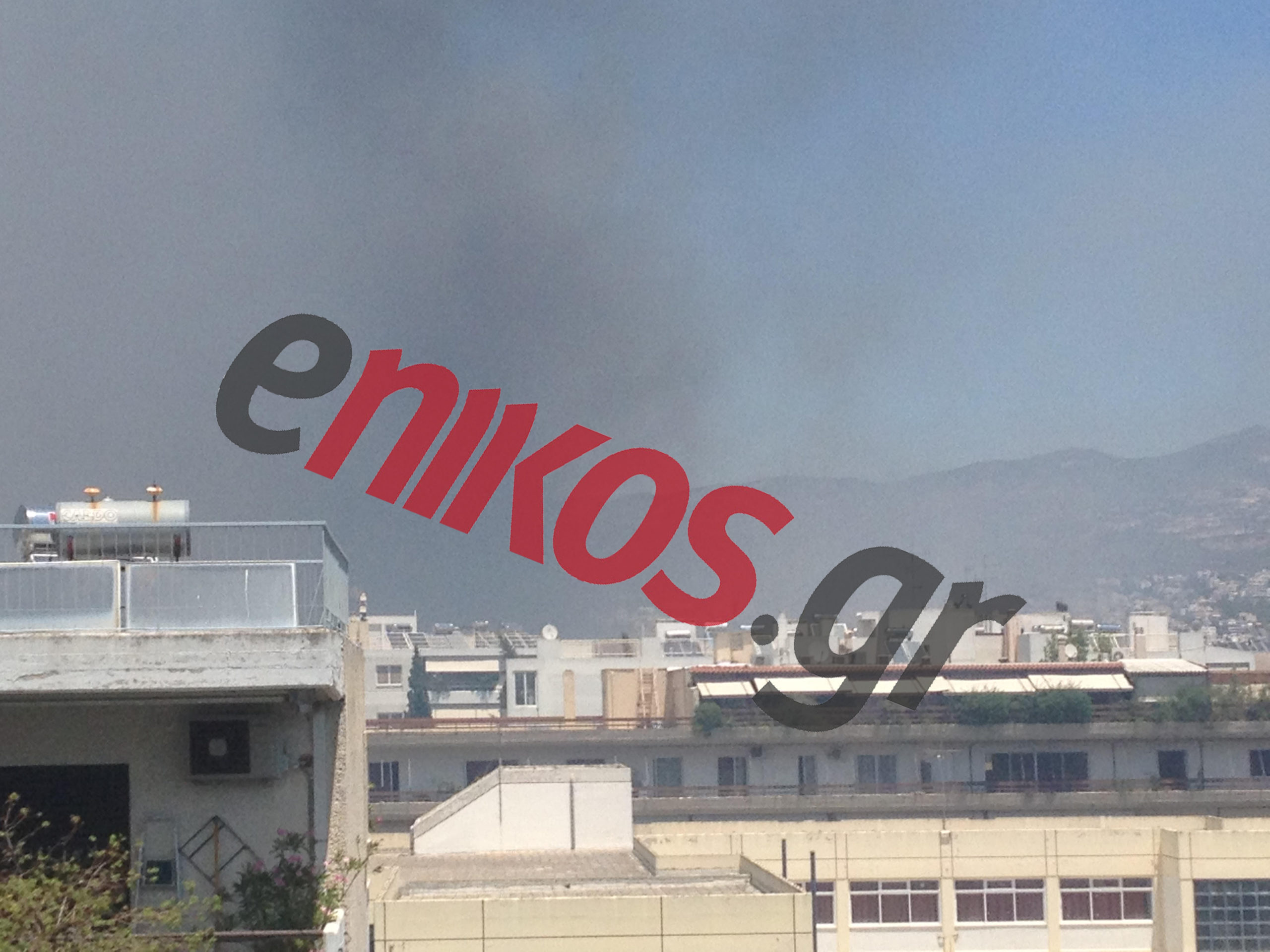 Όπως φαίνεται και στις φωτογραφίες που ανέβασε χρήστης του Twitter (@ebalaskas), οι καπνοί από τη φωτιά υψώνονται σε μεγάλο ύψος.
