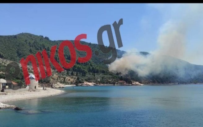 Συνεχίζει να μαίνεται η φωτιά στο Άγιον Όρος, στην περιοχή μεταξύ της Μονής Δοχειαρίου και Κωνσταμονίτου.