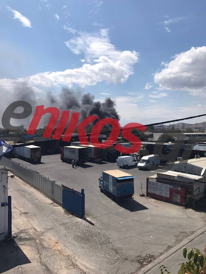 Στις φωτογραφίες και τα βίντεο που έστειλαν αναγνώστες του enikos.gr, φαίνονται οι πυκνοί καπνοί από τη φωτιά στη μεταφορική εταιρεία.