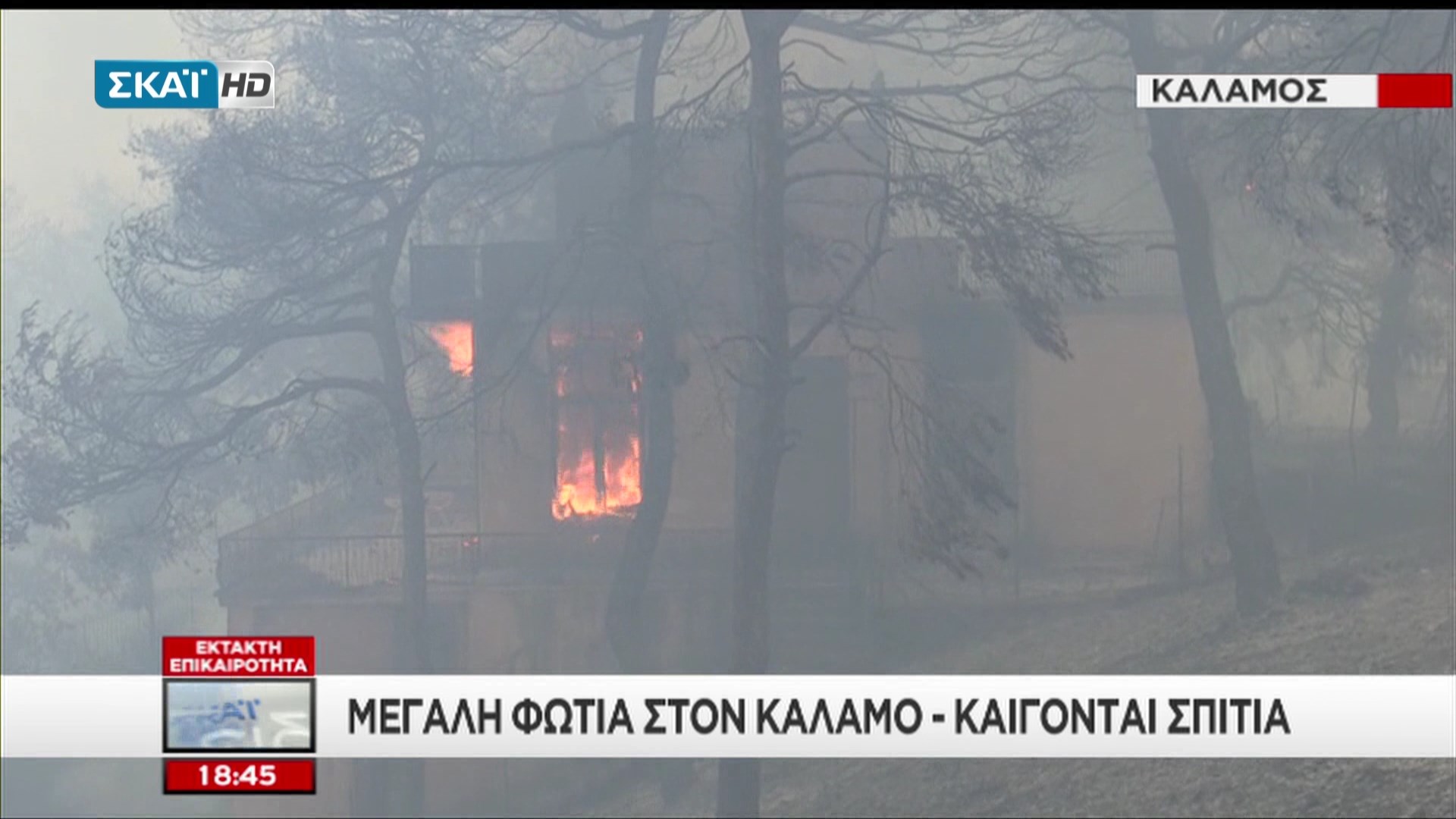 Σε εξέλιξη μεγάλη φωτιά στον Κάλαμο – Σπίτια παραδόθηκαν στις φλόγες