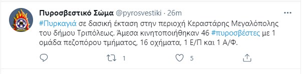 Στο σημείο έχουν σπεύσει 46 πυροσβέστες με 1 ομάδα πεζοπόρου τμήματος, 16 οχήματα, ένα ελικόπτερο και ένα αεροσκάφος.