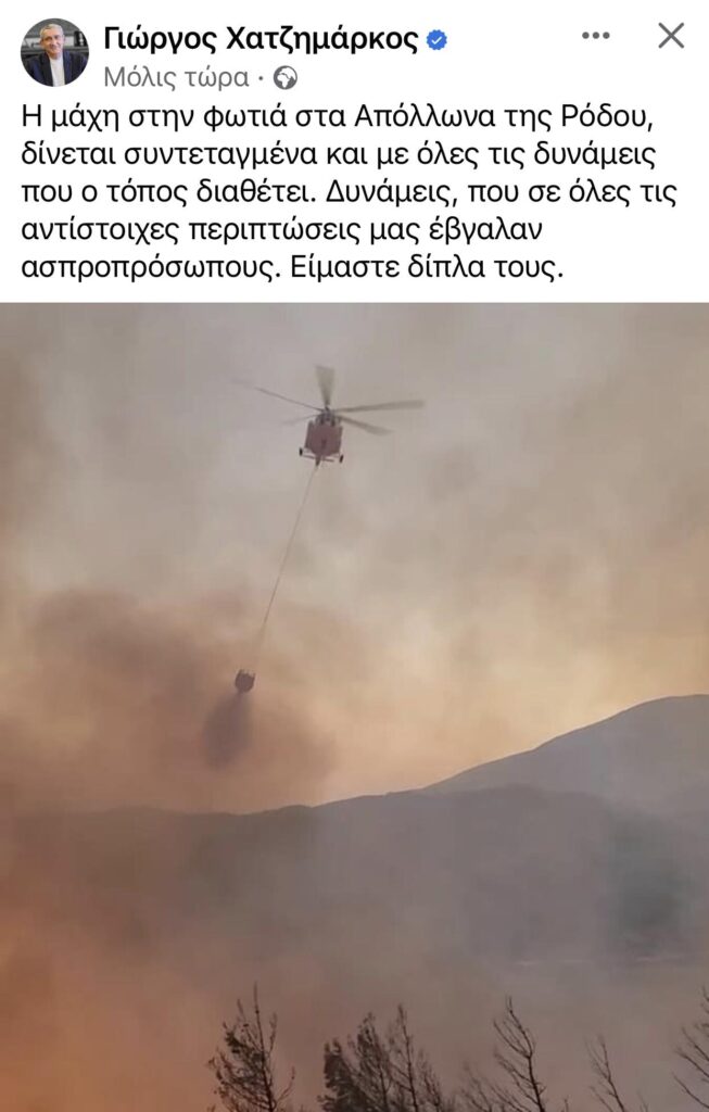 «Η μάχη δίνεται συντεταγμένα με όλες τις δυνάμεις που διαθέτει ο τόπος» ανέφερε σε ανάρτησή του ο Περιφερειάρχης Νοτίου Αιγαίου Γιώργος Χατζημάρκος.