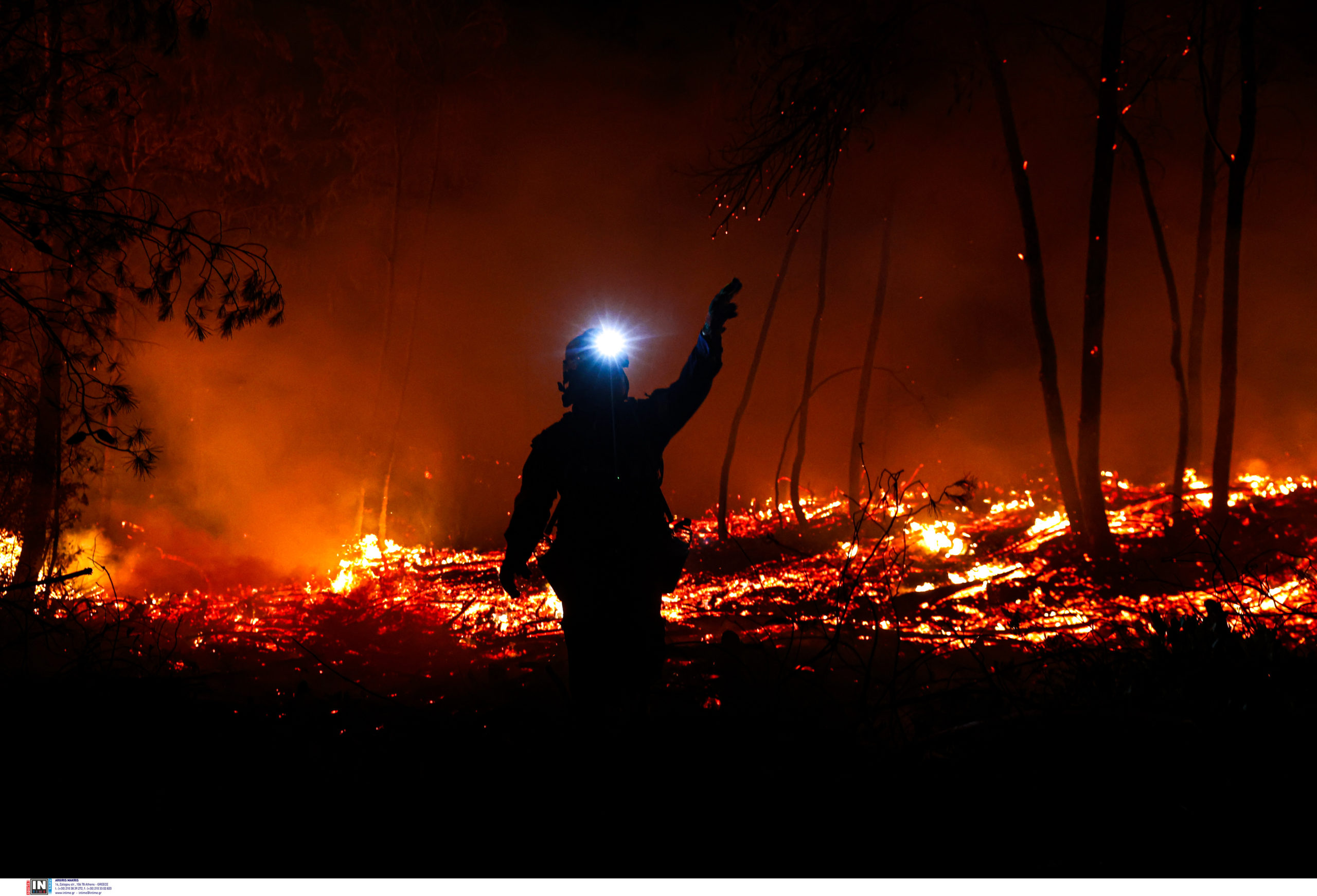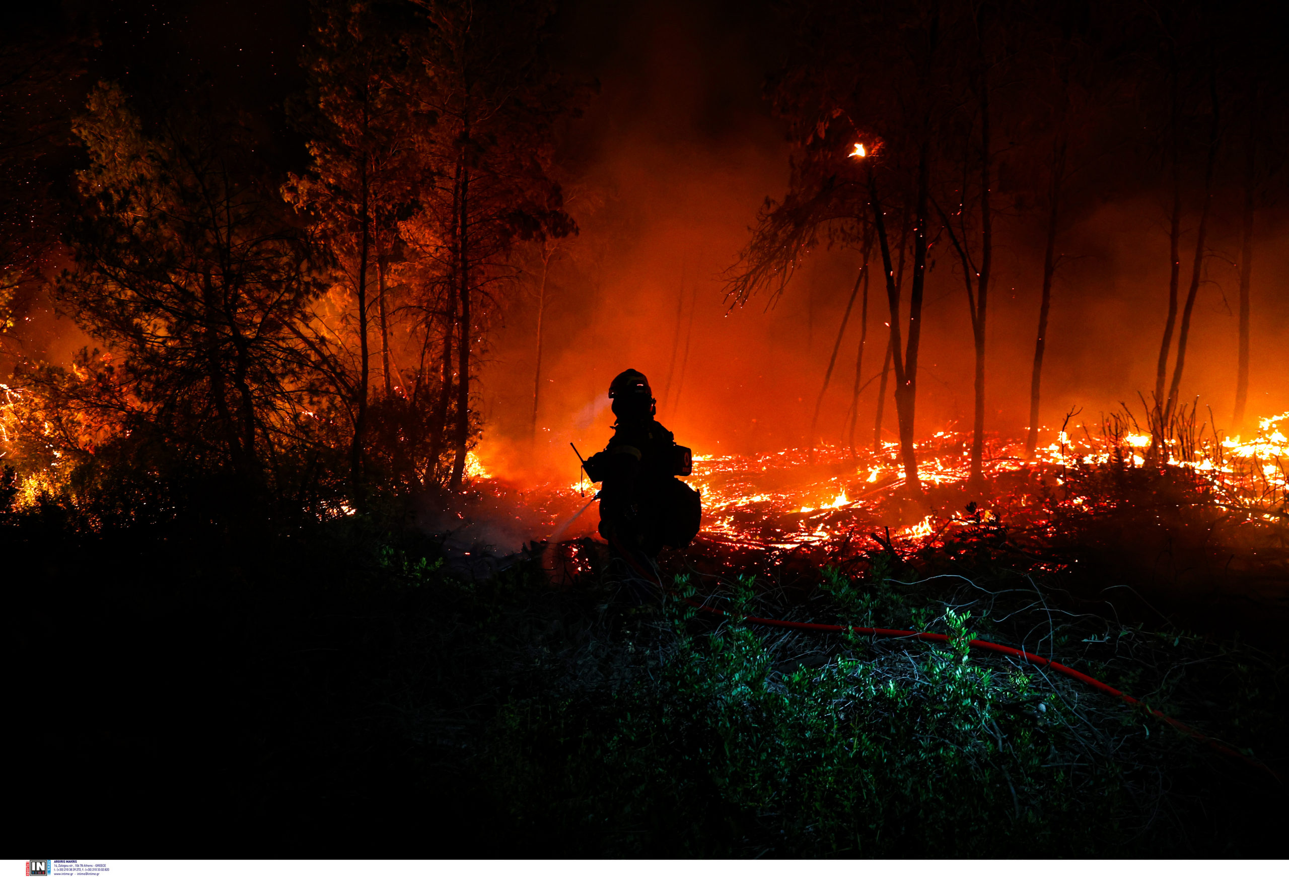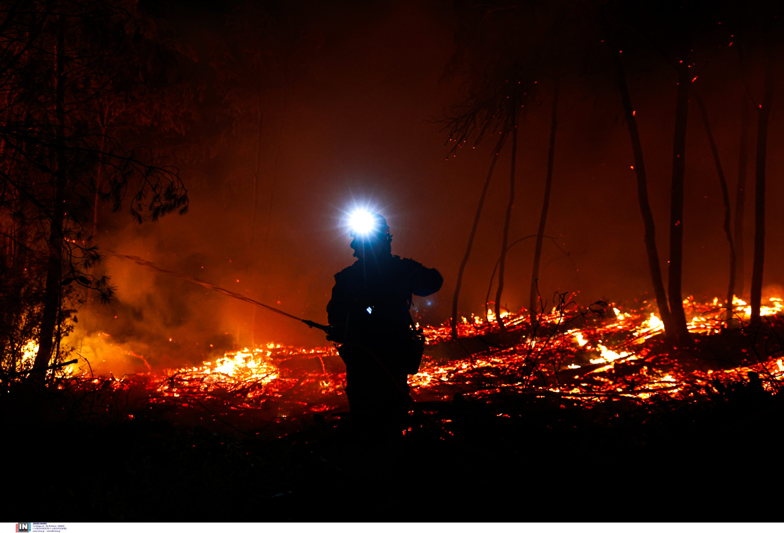 Προς το παρόν δεν απειλείται κατοικημένη περιοχή, αλλά καίγεται πευκοδάσος.