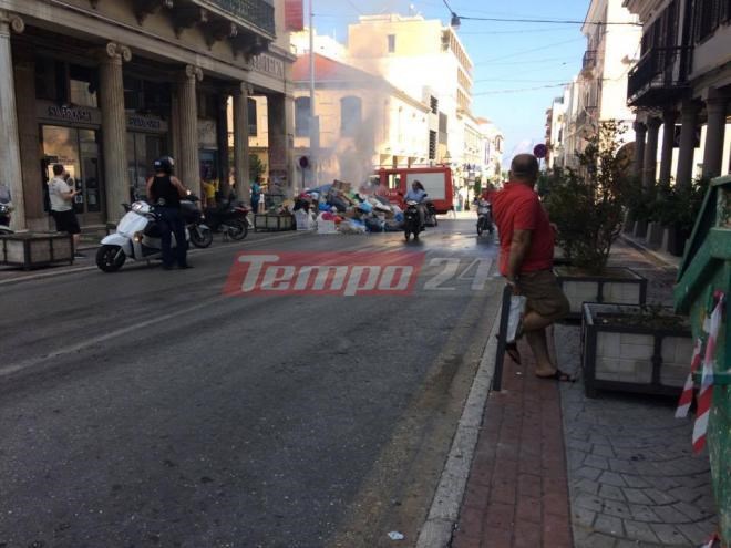 Φωτιές ξέσπασαν σε δύο κάδους απορριμμάτων με “βουνά” σκουπιδιών στο κέντρο της Πάτρας δημιουργώντας αποπνικτική ατμόσφαιρα.