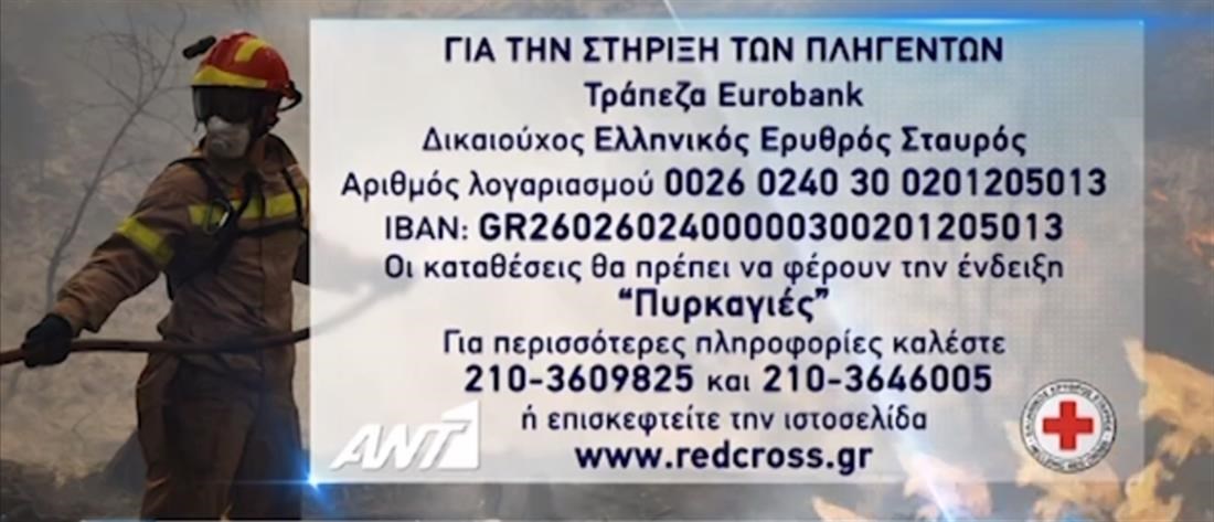 Όπως αναφέρει σε ανακοίνωση του ο Ελληνικός Ερυθρός Σταυρός, στο πλαίσιο της εκστρατείας του ΑΝΤ1 και του ΕΕΣ για τους πυρόπληκτους στην Ελλάδα, “η Α.Β.Υ. Πρίγκιπας Κάρολος της Ουαλίας, υποστηρικτής του Βρετανικού Ερυθρού Σταυρού, απέστειλε δωρεά στον Ελληνικό Ερυθρό Σταυρό για να ενισχύσει την τεράστια προσπάθεια του για να υποστηρίξει τους πολίτες που επλήγησαν από τις πυρκαγιές στην Ελλάδα.