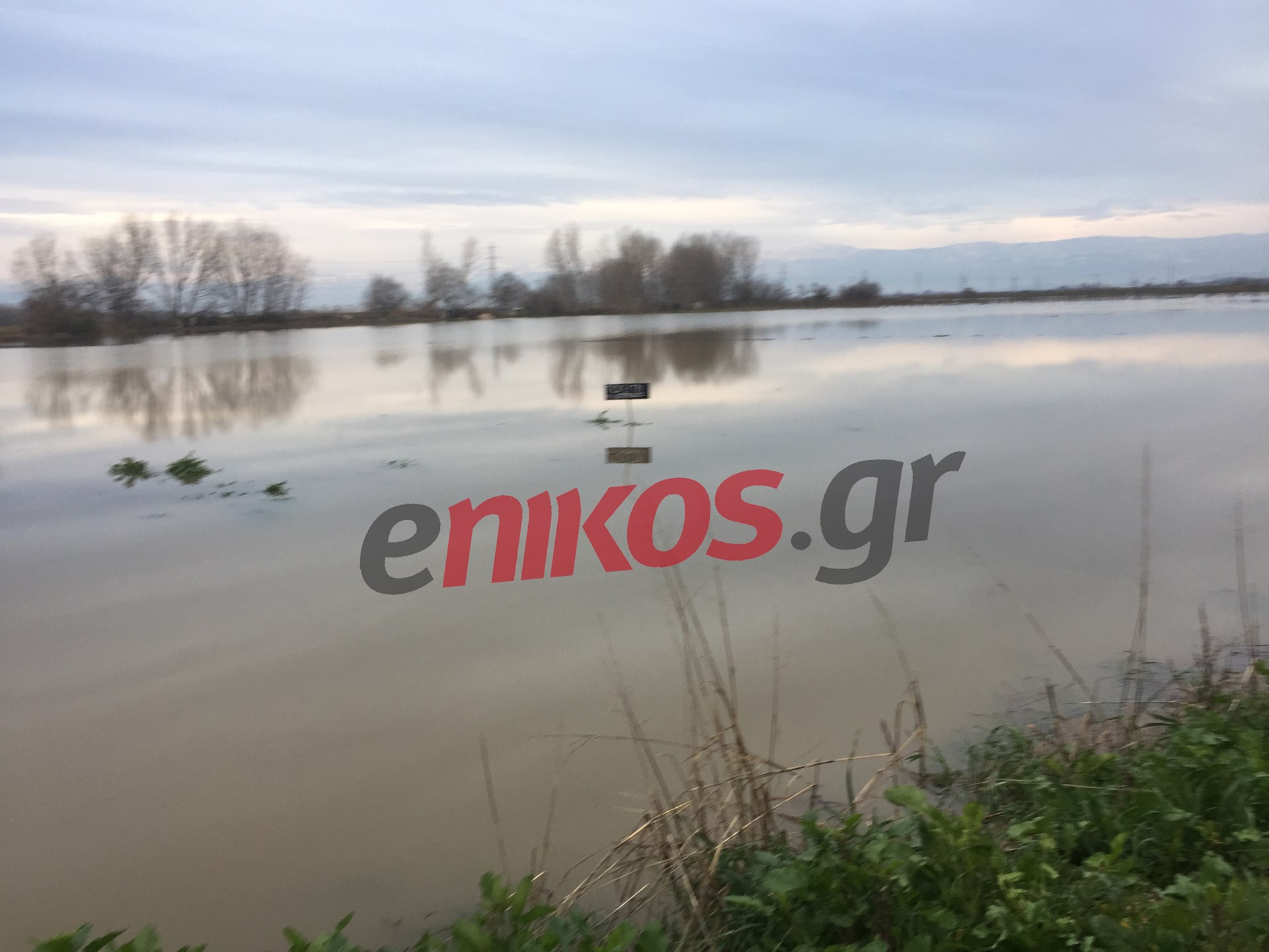 Όπως βλέπουμε και στη φωτογραφία που έστειλε αναγνώστης στο enikos.gr από τη Νομή Τρικάλων, ένα από τα χωράφια έχει καλυφθεί με νερό, ενώ διακρίνεται και η ταμπέλα με το πωλητήριο που έχει βάλει ο ιδιοκτήτης.