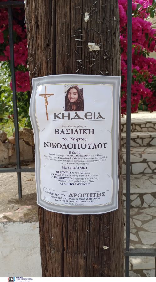 Την ίδια ώρα, σήμερα (12/06) το απόγευμα συγγενείς και φίλοι της μικρής Βασιλικής της είπαν το τελευταίο σπαρακτικό «αντίο» στον Ιερό Ναό Αγίου Αθανασίου Μυρτιάς.
