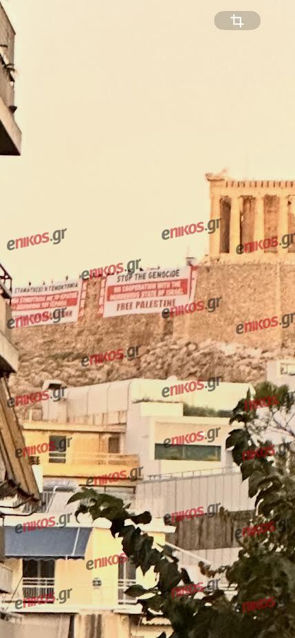 Δύο πανό που αναφέρουν, μεταξύ άλλων, «Stop the genocide» και «Free Palestine» έχουν αναρτηθεί στην Ακρόπολη, από μέλη του ΚΚΕ και της ΚΝΕ, όπως μπορείτε να δείτε σε φωτογραφία που έστειλε αναγνώστης του enikos.gr.