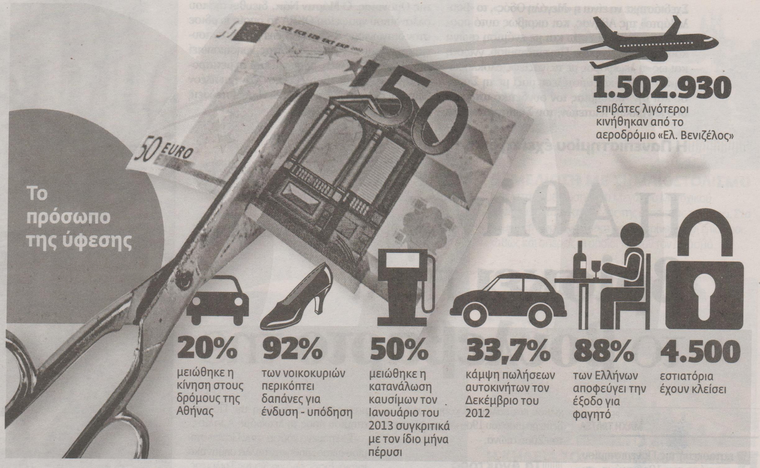 Οι εποχές των παχιών αγελάδων άρχισαν να περνούν στη σφαίρα της λήθης από το τέταρτο τρίμηνο του 2008. Οι καταναλωτικές συνήθειες των Ελλήνων έχουν αλλάξει άρδην, ενώ και η οικονομική δραστηριότητα έει συρρικνωθεί πλέον δραστικά.