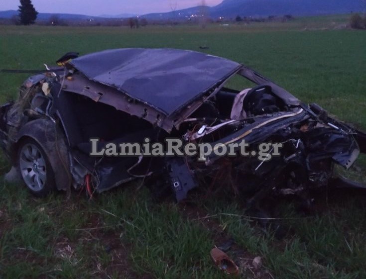 Σύμφωνα με τα νεότερα στοιχεία που μεταδίδει το lamiareport.gr, ένα αυτοκίνητο, μάρκας BMW, στο οποίο επέβαιναν τρία άτομα, εξετράπη της πορείας του και προσέκρουσε σε πλάτανο. Η σύγκρουση ήταν τόσο σφοδρή που το όχημα κόπηκε στα δύο, καθώς η δεξιά πλευρά αποκολλήθηκε, όπως φαίνεται και στις φωτογραφίες. Το ένα κομμάτι πετάχτηκε στα χωράφια και το δεύτερο άρπαξε φωτιά.
