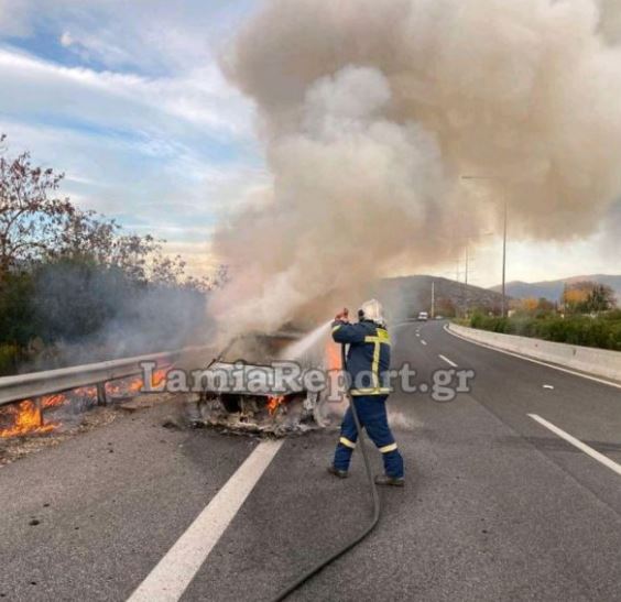 Εν κινήσει αυτοκίνητο λαμπάδιασε στην εθνική οδό Λαμίας – Θεσσαλονίκης και καταστράφηκε ολοσχερώς, λίγο πριν τις 16:30 το απόγευμα της Παρασκευής (22/11).