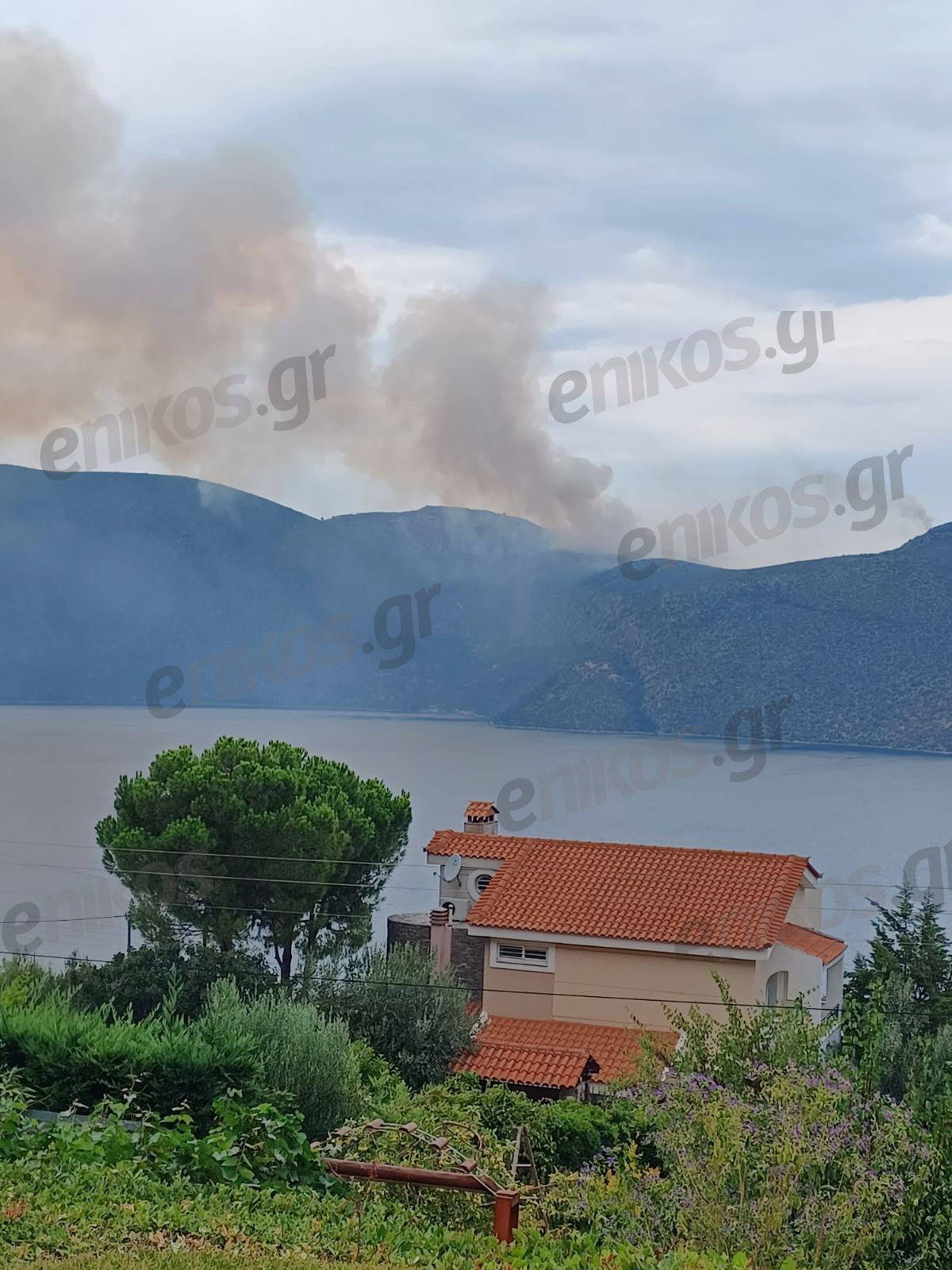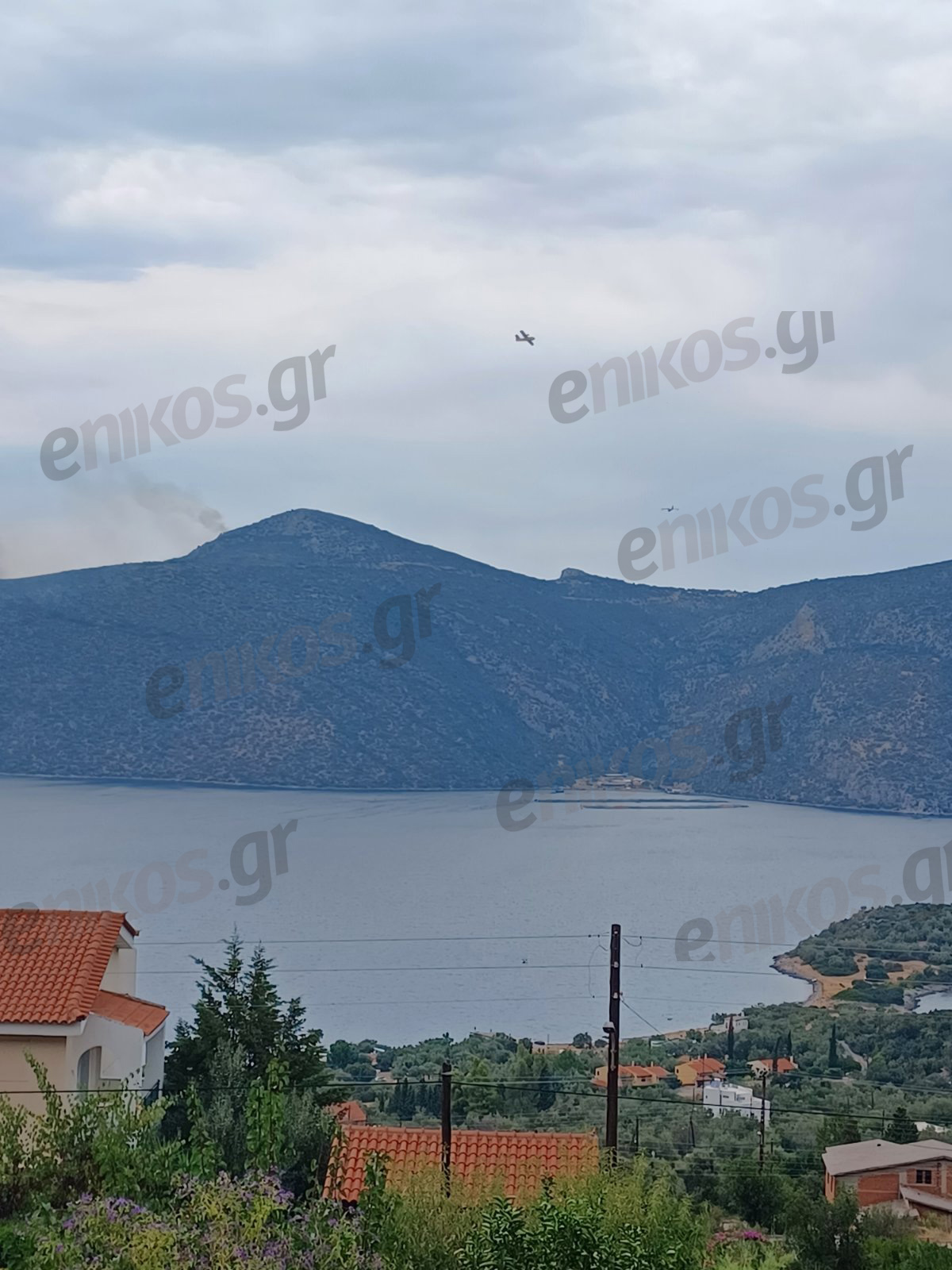 Σε φωτογραφίες που έστειλε αναγνώστης του enikos.gr διακρίνονται οι πυκνοί καπνοί και ένα αεροσκάφος να επιχειρεί για την κατάσβεση της φωτιάς: