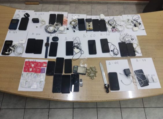Συνελήφθησαν 2 αλλοδαποί έγκλειστοι και κατασχέθηκαν ευρήματα (πλήθος κινητών τηλεφώνων, ναρκωτικές ουσίες και αντικείμενο που υπάγεται στο νόμο περί όπλων), απόρροια των στοχευμένων ερευνών που διενεργήθηκαν, παρουσία εισαγγελικού λειτουργού, σε 45 κελιά, κατόπιν διερεύνησης και αξιοποίησης πληροφοριών.