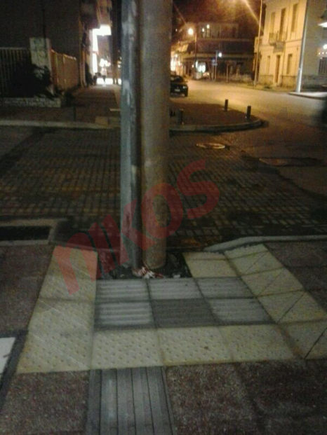 Στις βοηθητικές γραμμές των πεζοδρομίων, “παρεμβάλλονται” συχνά κολώνες της ΔΕΗ κι έτσι είτε τυφλοί είτε άτομα που χρησιμοποιούν αμαξίδιο, είναι σε απόγνωση.