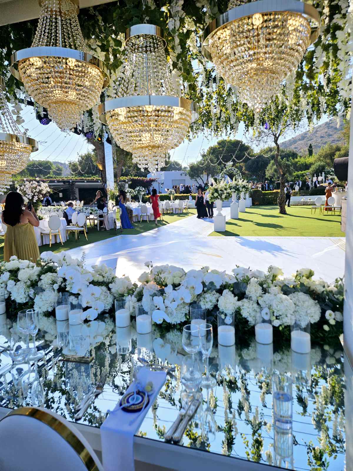 «Ανθρώποι από το εξωτερικό, που είναι γνωστοί στη χώρα τους και στους δικούς τους κύκλους, ζητούν απόλυτη μυστικότητα. Εκεί οι απαιτήσεις είναι διαφορετικές και πρέπει να παρέχουμε αξιοπιστία, κατανόηση των αναγκών και άμεση εξυπηρέτηση. Για παράδειγμα, είχαμε γάμο σε νησί, όπου την επόμενη μέρα το ζευγάρι θα ταξίδευε σε άλλο κοντινό νησί και την ώρα του πάρτι μας ενημέρωσαν ότι θα ήθελαν να κλείσουν ελικόπτερο για το πρωί. Μέχρι να κόψουν τη γαμήλια τούρτα, το είχαμε ήδη κανονίσει. Σε άλλες περιπτώσεις έχουμε dress code για το προσωπικό με το θέμα του event, συχνά οργανώνουμε θεάματα και σκηνικά που ανταγωνίζονται ολοκληρωμένες παραγωγές και δεν είναι λίγες οι φορές που έχουμε φέρει επώνυμους τραγουδιστές και συγκροτήματα για να παίξουν στην εκδήλωση», δηλώνει η Νένα Παπαδοπούλου.