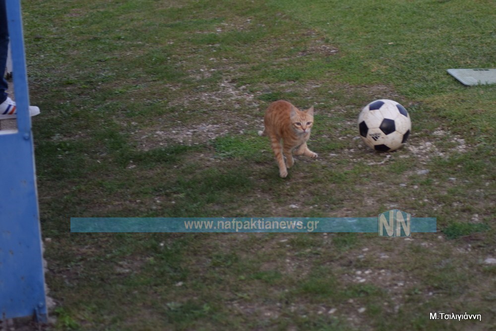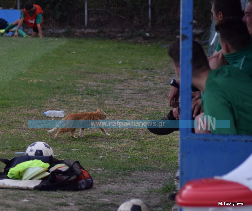 Ο ποδοσφαιρικός αγώνας ήταν σε εξέλιξη, όταν μία πανέμορφη γάτα μπήκε στον αγωνιστικό χώρο τρομαγμένη.Το περιστατικό συνέβη στον αγώνα του 3ου ομίλου της Γ’ ΕΘνικής Α.Ο. Φλωριάδας – Ναυπακτιακός Αστέρας όταν κατά την εξέλιξη του αγώνα, μια γάτα πέρασε παράλληλα με την πλάγια γραμμή και μπροστά από τους πάγκους στο γήπεδο Κομποτίου. Όπως ήταν φυσικό τράβηξε θα βλέμματα όλων αν και το φιλικό τετράποδο ήταν τρομαγμένο και προσπαθούσε να βρει διέξοδο.Δείτε το βίντεο και φωτογραφίες.