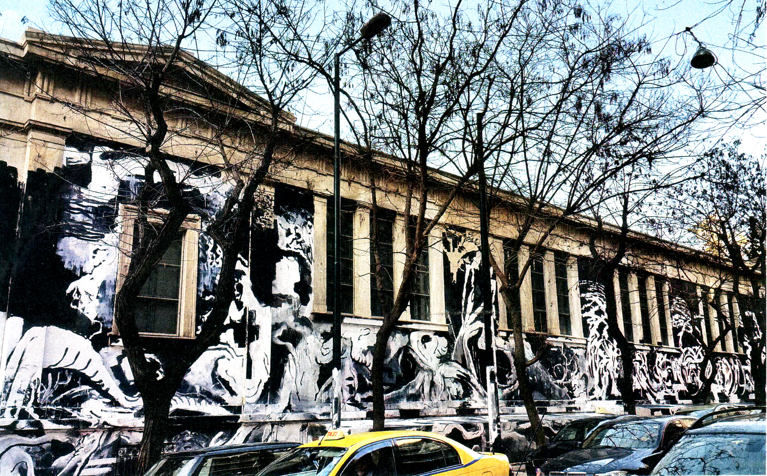 Καλυμμένη με ένα τεραστίων διαστάσεων γκράφιτι είναι εδώ και λίγα 24ωρα η όψη του ιστορικού κτιρίου του Πολυτεχνείου επί της οδού Στουρνάρη.