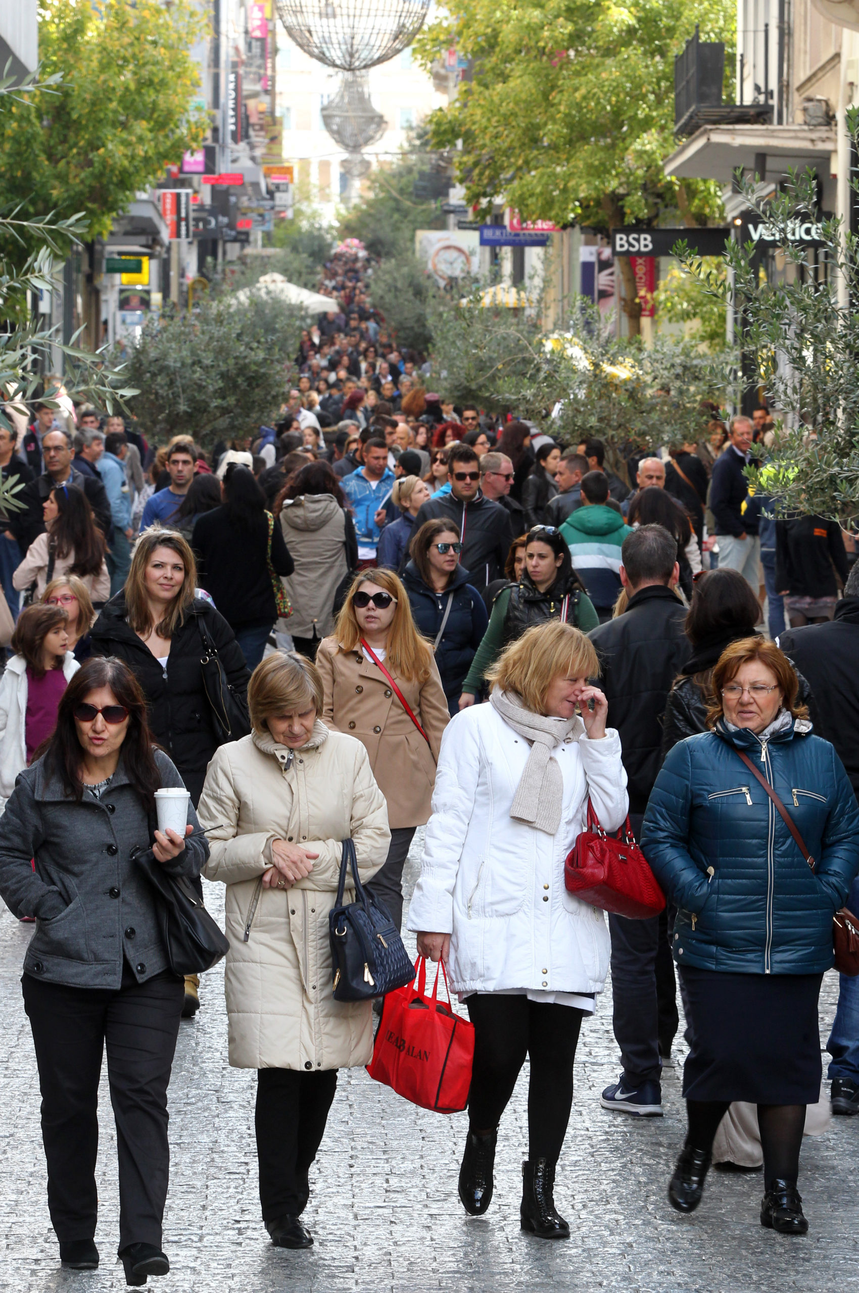 Ανοιχτά τα καταστήματα σήμερα και πλήθος πολιτών έσπευσαν στο κέντρο της Αθήνας καθώς σήμερα ξεκινά και το δεκαήμερο εκπτώσεων του Νοεμβρίου.