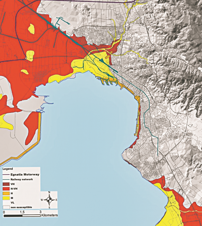 «Με διαφορετικά σενάρια μεγεθών σεισμών έχει φανεί πως το παράκτιο μέτωπο της πόλης είναι επιδεκτικό ρευστοποιήσεων. Χρειάζονται μελέτες για να δούμε τη διακινδύνευση του ανθρωπογενούς περιβάλλοντος» σημείωσε, μιλώντας στο «Έθνος» ο επίκουρος καθηγητής. Σύμφωνα με τον ίδιο, ιδιαίτερη έμφαση πρέπει να δοθεί στο δυτικό παράκτιο μέτωπο, όπου είναι πιθανές αστοχίες σε λιμενικές εγκαταστάσεις, σε επιχειρήσεις στη βιομηχανική ζώνη και στην περιοχή των διυλιστηρίων. Επίσης, απαιτείται να γίνει εκτίμηση του δυναμικού ρευστοποίησης των εδαφικών σχηματισμών σε γέφυρες και στο οδικό-σιδηροδρομικό δίκτυο στη λεκάνη του Αξιού.