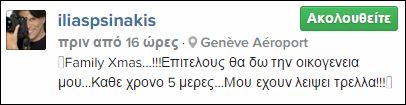 “Μου έχουν λείψει τρελά” έγραψε χαρακτηριστικά στο λογαριασμό του στο instagram δίπλα στην φωτογραφία που ανέβασε από το αεροδρόμιο της Γενεύης…