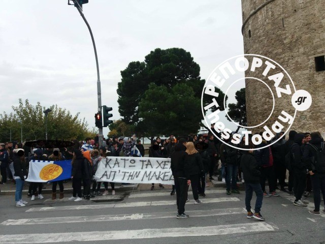 Σε εξέλιξη βρίσκεται η συγκέντρωση των μαθητών σχολείων που τελούν υπό κατάληψη για το θέμα της Μακεδονίας, μπροστά από τον Λευκό Πύργο.Μαθητές από διάφορες περιοχές του Νομού βρίσκονται στο χώρο μπροστά από το Βασιλικό Θέατρο και το Λευκό Πύργο με σημαίες στα χέρια φωνάζοντας συνθήματα για την ελληνικότητα της Μακεδονίας.Η συμμετοχή είναι αρκετά μεγάλη, ενώ στις 12:00 ξεκίνησε και πορεία στους δρόμους της πόλης.
