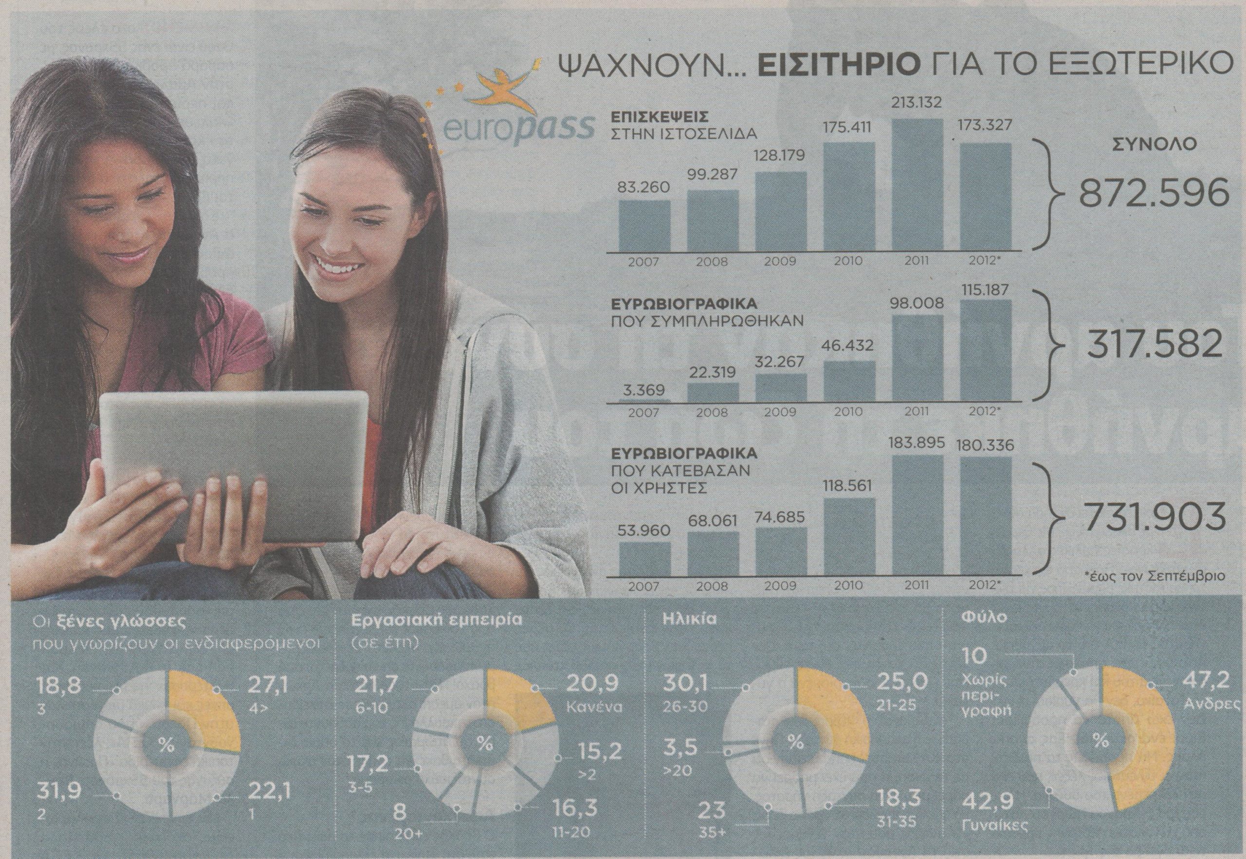 Σύμφωνα με επίσημα στοιχεία της ιστοσελίδας της Ευρωπαϊκής Ενωσης, Εuropass, στην οποία χιλιάδες άνθρωποι καταφεύγουν για να συμπληρώσουν το ευρωβιογραφικό που θα τους χαρίσει μια θέση εργασίας σε κάποιο άλλο κράτος, οι αιτήσεις Ελλήνων που κατατέθηκαν στο διαδικτυακό τόπο τα πέντε τελευταία χρόνια αγγίζουν τις 317.582.
