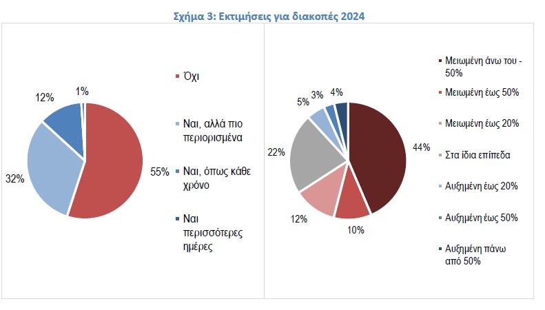 Στην Ελλάδα, σύμφωνα με την τελευταία έρευνα του Ινστιτούτου Έρευνας Λιανεμπορίου Καταναλωτικών Αγαθών (ΙΕΛΚΑ), για την επίδραση των ανατιμήσεων στις καταναλωτικές συνήθειες των Ελλήνων, το staycation φαίνεται να είναι «μονόδρομος» για τους περισσότερους πολίτες, καθώς 1 στους 2 καταναλωτές (55%) δήλωσε ότι δεν θα κάνει διακοπές το καλοκαίρι του 2024, ενώ 1 στους 3 (32%) θα κάνει πιο περιορισμένες.