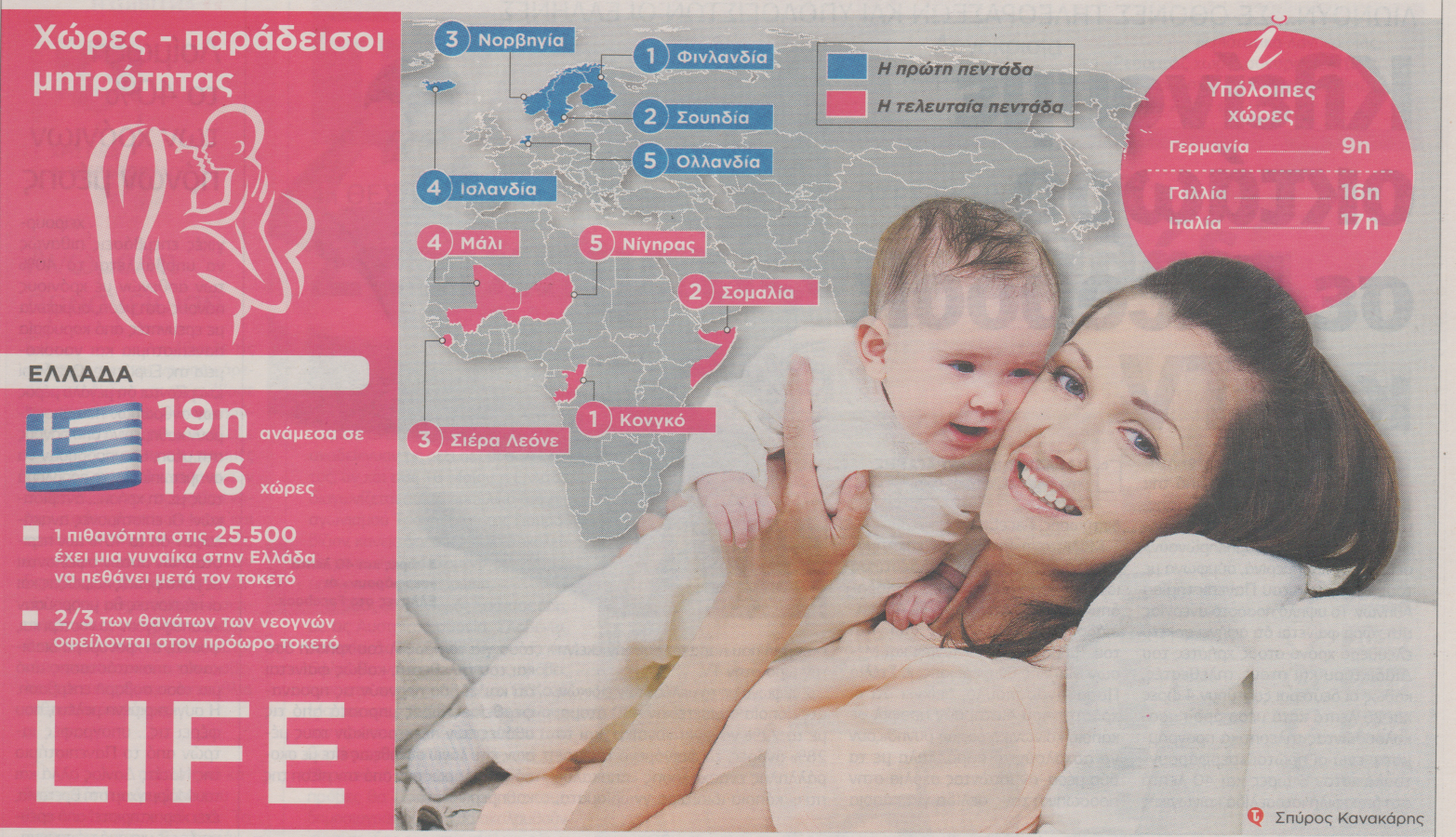 Παρά το γεγονός ότι η οικονομική κρίση και τα μέτρα λιτότητας της κυβέρνησης έχουν αποθαρρύνει πολλά νέα ζευγάρια να προσθέσουν νέα μέλη στην οικογένειά τους, η Ελλάδα συνεχίζει να είναι μια καλή χώρα για να γεννήσει και να μεγαλώσει το παιδί της μια γυναίκα ή τουλάχιστον αυτό ισχυρίζεται η φιλανθρωπική οργάνωση  Save the Children.