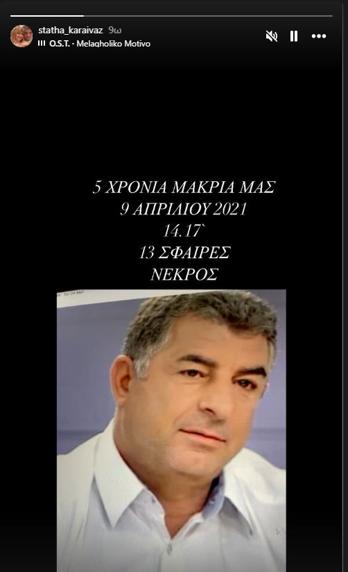 Στο Instagram ανέβασε μία φωτογραφία του δημοσιογράφου και έγραψε:  «5 χρόνια μακριά μας… 9 Απριλίου 2021… 14.17… 13 σφαίρες… νεκρός…».