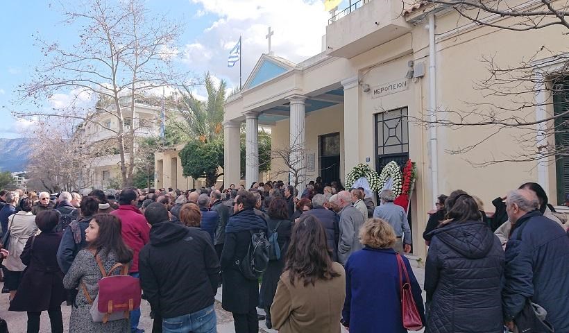 Στην κηδεία παραβρέθηκαν εκπρόσωποι από ένα ευρύ φάσμα του καλλιτεχνικού και πολιτικού κόσμου. Ανάμεσα τους οι ‘Αννα Παναγιωτοπούλου, Γιάννης Βογιατζής, Χρήστος Βαλαβανίδης, Δημήτρης Πιατάς, Βαγγέλης Θεοδωρόπουλος, Λάκης Παπαστάθης, Γιώργος Τσεμπερόπουλος, Γιώργος Κακουλίδης, Ζυράννα Ζατέλη, ‘Ακης Σακελλαρίου, Θέμις Μπαζάκα, Διονύσης Σαββόπουλος, Ρήγας Αξελός, Διονύσης Καψάλης, Ελένη Ζιώγα, Νίκος Αλεξίου.