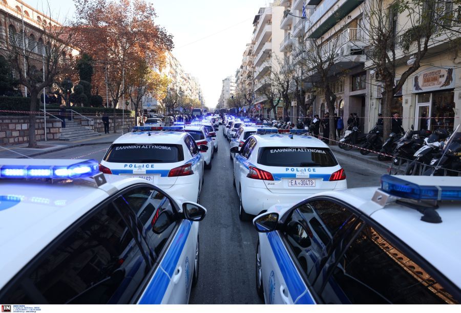 Το φέρετρο του αστυνομικού, καλυμμένο με τη γαλανόλευκη, έφτασε λίγο μετά τις 13:00 στον Ιερό Ναό του Αγίου Δημητρίου στη Θεσσαλονίκη, με την οικογένεια του να ξεσπάει σε λυγμούς την ώρα που περνούσε από μπροστά τους.