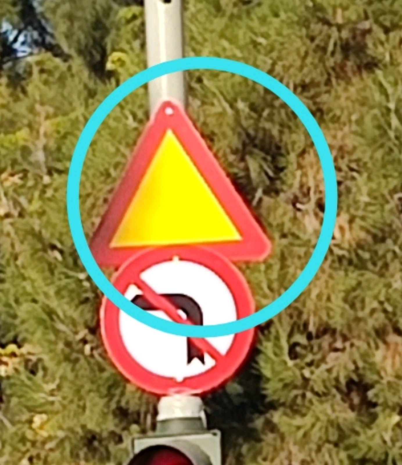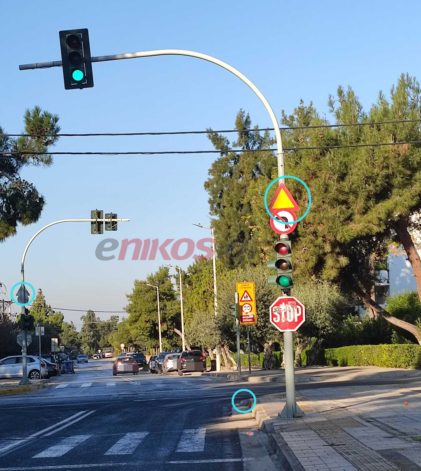 Όπως μπορείτε να δείτε, το σήμα για την υποχρεωτική παραχώρηση προτεραιότητας είναι ανάποδα στο φανάρι με τον αναγνώστη του enikos.gr να αναρωτιέται: «Ποιο σήμα είναι αυτό;». Το ίδιο συμβαίνει και από το αντίθετο ρεύμα κυκλοφορίας.